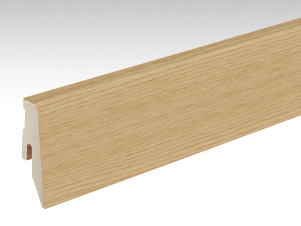 Als Designelement werden sie zu Unrecht unterschätzt – Sockelleisten sorgen für einen weichen Übergang vom Boden zur Wand oder setzen gekonnt einen Akzent im Raum. Die Leiste in Eschendekor harmoniert mit allen Wohnräumen und Parkettböden.