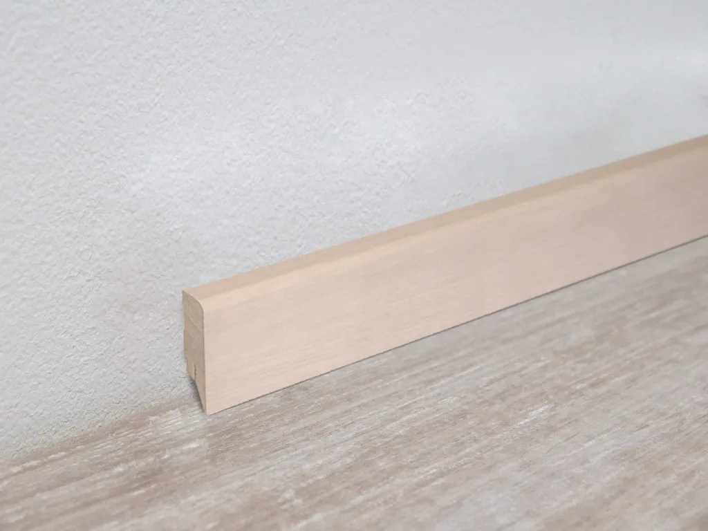 Folierte Sockelleiste mit stabilem MDF-Kern und ansprechendem Dekor.