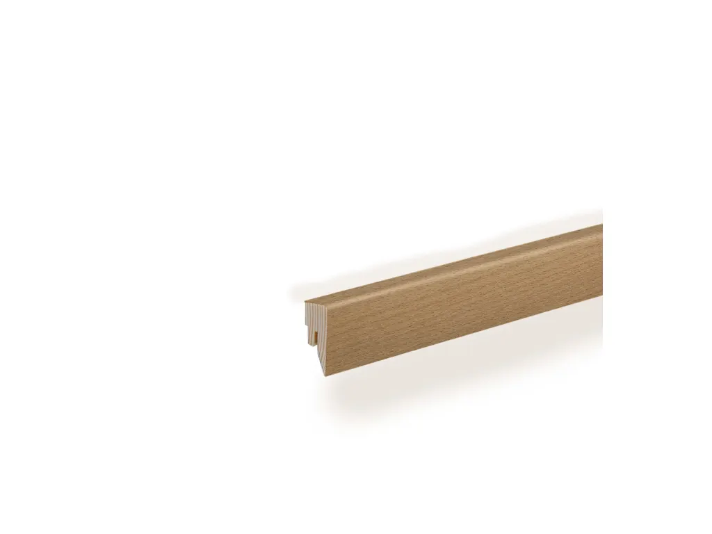 Die Sockelleiste ist 2,4 m lang, 16 mm breit und 580 mm hoch. Sie besteht aus robustem furnierten Nadelholz. Die Montage gelingt dank Clipsystem spielend leicht. Alternativ dazu kannst du die Sockelleiste auch mit Heißschmelzkleber oder Nägeln anbringen.