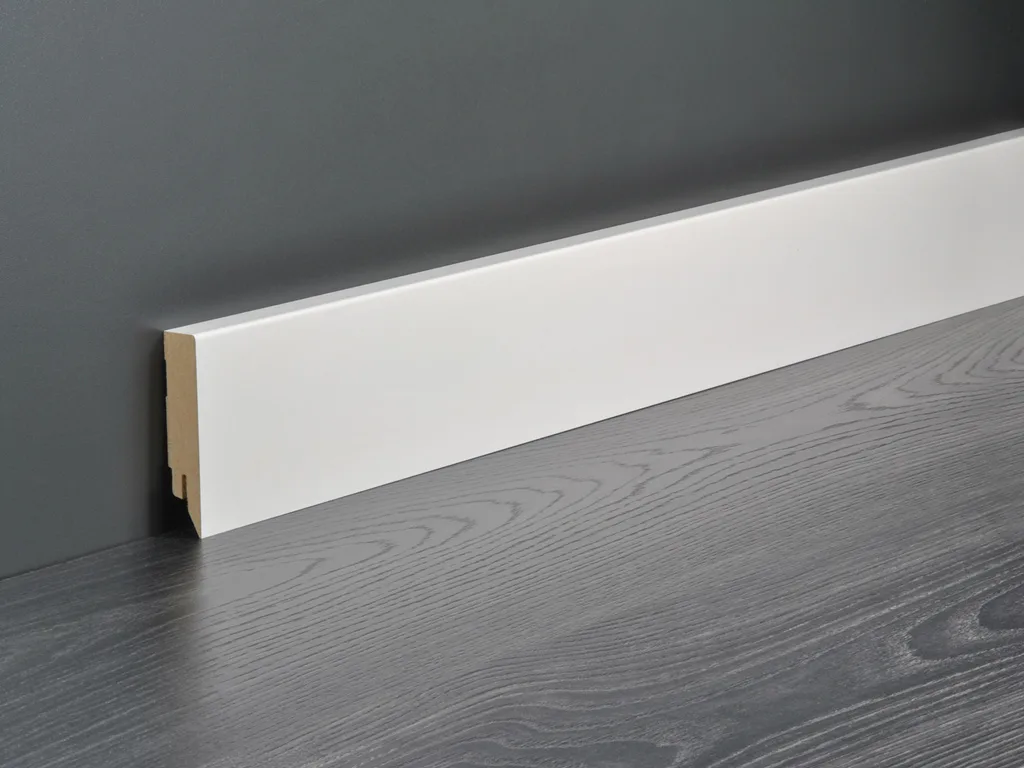 Sockelleisten mit stabilem MDF Kern und lackierter Oberfläche.