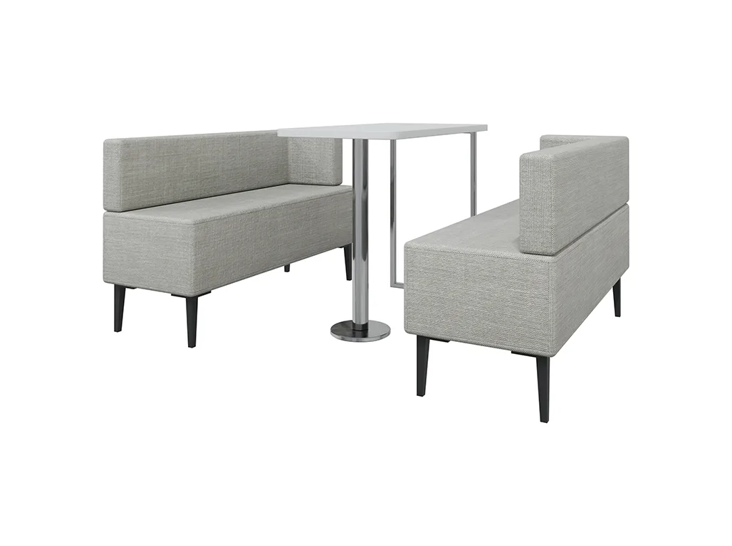 Das Sofaset Cana bietet mit zwei Sitzsofas, die eine Größe von je LBH 140 x 58 x 58 cm haben und einem passenden Tisch mit einer Größe von LBH 110 x 36 x 65 cm eine komfortable Sitzgruppe für bis zu vier Personen. Ideal für kurze Meetings, Pausen oder informelle Gespräche, schafft es eine einladende Atmosphäre in offenen Arbeitsbereichen oder Kommunikationszonen. In Grau und Weiß gehalten, überzeugt das Set durch seine schlichte, moderne Optik und fügt sich harmonisch in verschiedenste Raumkonzepte ein. Die klaren Linien und das ausgewogene Verhältnis von Funktionalität und Komfort machen Cana zu einer vielseitigen Lösung für gemeinsames Arbeiten.