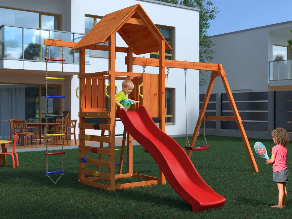 Noch mehr Abwechselung bringt der Anbau mit zwei Schaukeln, der mehr Platz zum Spielen bietet und problemlos auch von mehreren Kindern gleichzeitig benutzt werden kann.