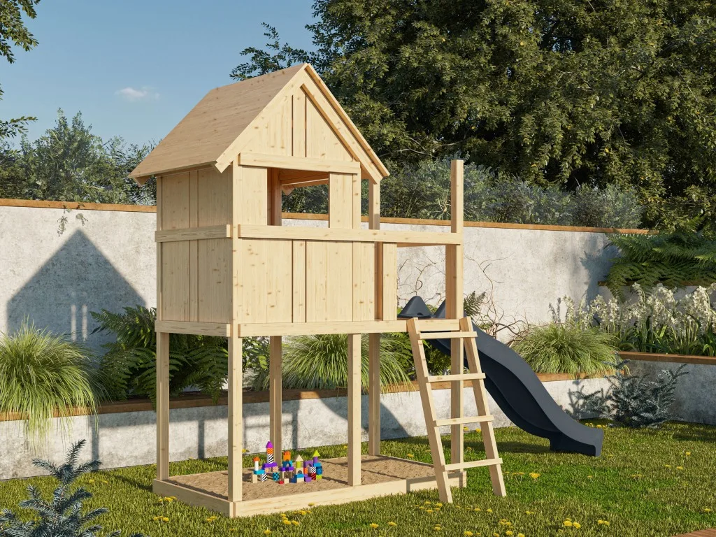 Spielturm Frieda naturbelassen inkl. Rutsche anthrazit