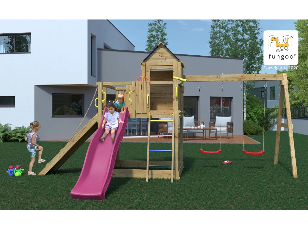 Fungoo ist der Erfinder eines ausgeklügelten Modulsystems für Gartenspielgeräte, das Kinderaugen zum Leuchten bringt. Individuelle Kombinationen aus Spieltürmen und -häusern mit Modulen wie Schaukeln, Rutschen oder Kletterwänden machen den eigenen Garten zum Abenteuerspielplatz. Dabei setzt der Hersteller auf kesseldruckimprägniertes Holz als Träger seiner Geräte. Accessoires wie ein Fernglas oder Lenkrad aus hochwertigem Kunststoff runden das Angebot ideal ab und lassen keine Wünsche mehr offen.