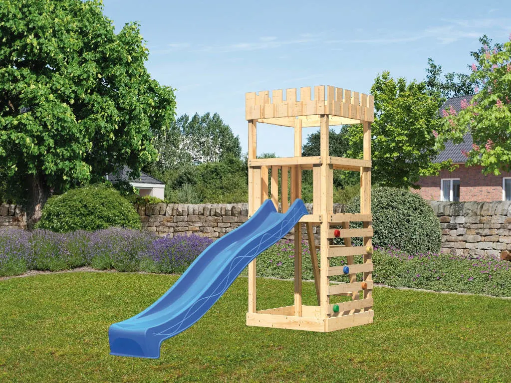 • Spielturm Löwenherz, inkl. Kletterwand, Rutsche blau