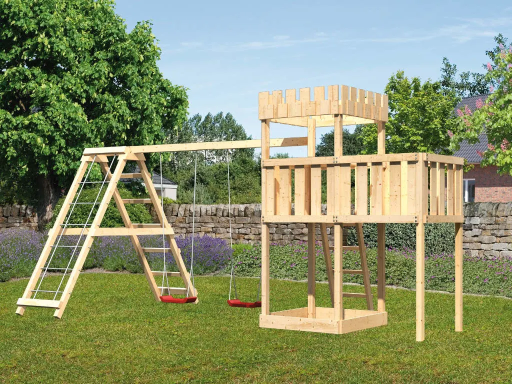 KARIBU Spielturm Ritterburg Löwenherz SET naturbelassen