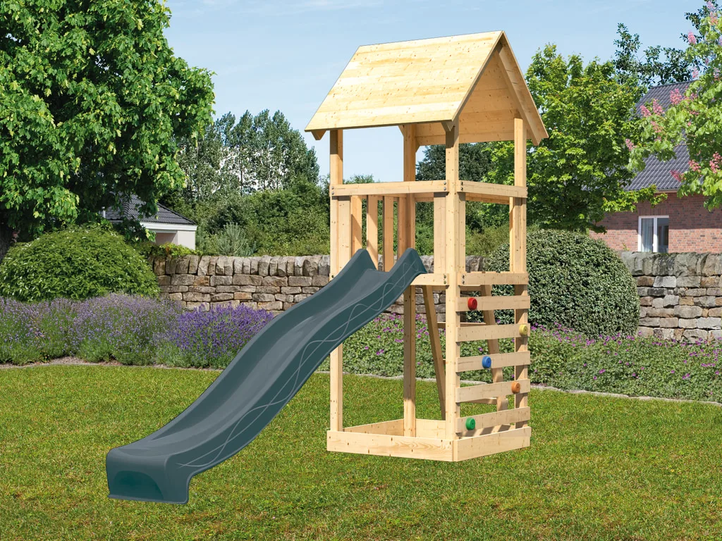 Spielturm Set Lotti naturbelassen inkl. Rutsche anthrazit + Kletterwand