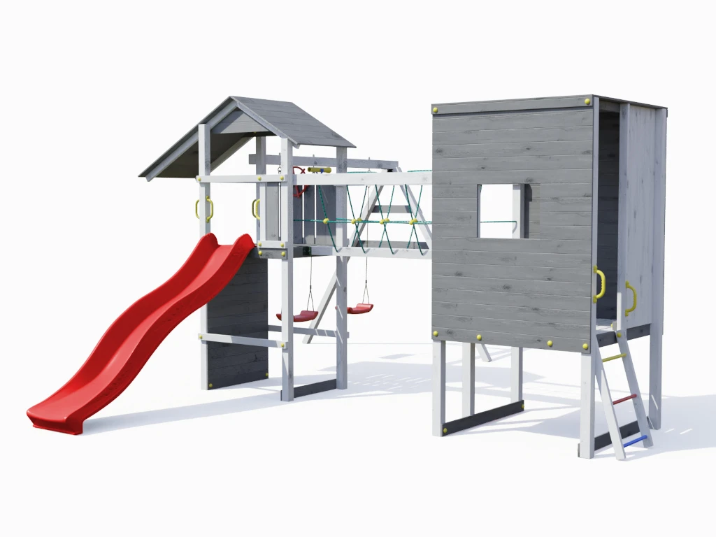 Bei diesem Spielturm steht viel Bewegung auf dem Programm. Die erhöhte Plattform ist über verschiedene Wege zu erreichen, das bietet eine Menge Spiel und Spaß. Vielleicht wird der Spielturm sogar der zentrale Treffpunkt der Kinder aus deiner Nachbarschaft. Die Firsthöhe liegt bei 254 cm.