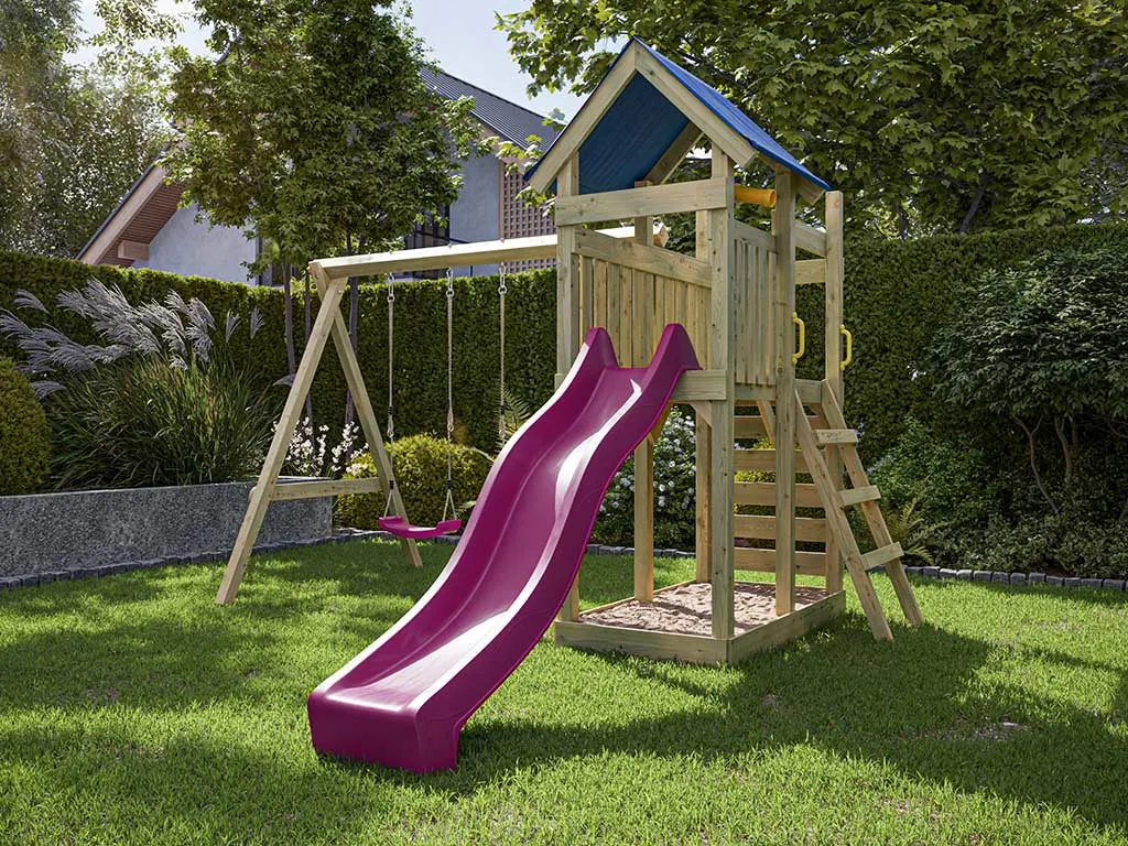 Dieser Spielturm ist aus Holz gefertigt. Der Naturstoff ist das perfekte Material für Kinderspielgeräte – strapazierfähig und beständig. Die Spielturmpfosten sind 7 x 7 cm stark und sorgen damit für eine besonders stabile Grundkonstruktion.
