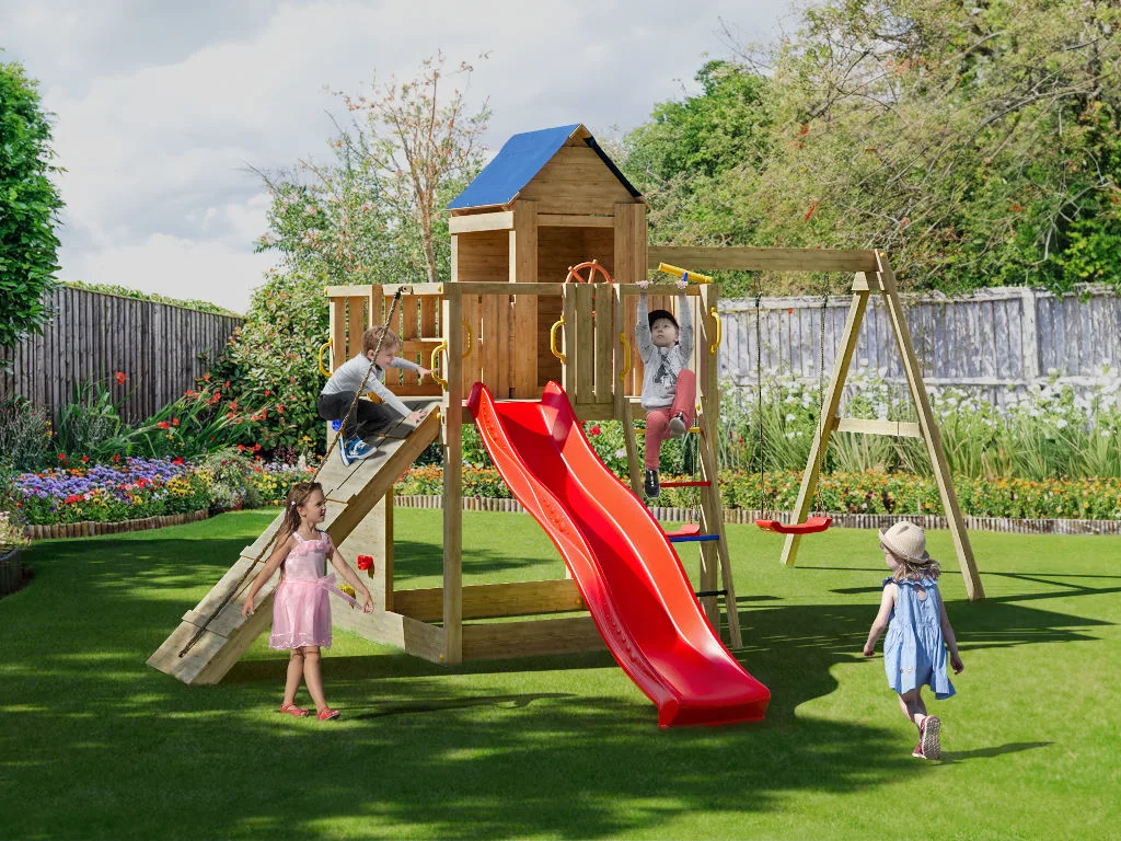 Bei diesem Spielturm steht viel Bewegung auf dem Programm. Ein eigenes Abenteuerland für dein Kind für jede Menge Spiel und Spaß! Das Außenmaß dieses Spielturms beträgt B x T: 501 x 443 cm. Die Firsthöhe liegt bei 272 cm.