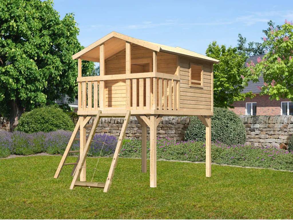 Stelzenhaus Benjamin naturbelassen inkl. Netzrampe