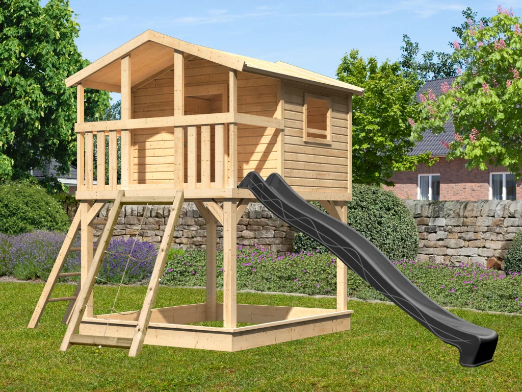 Stelzenhaus Benjamin SET 19 mm naturbelassen inkl. Rutsche anthrazit + Netzrampe