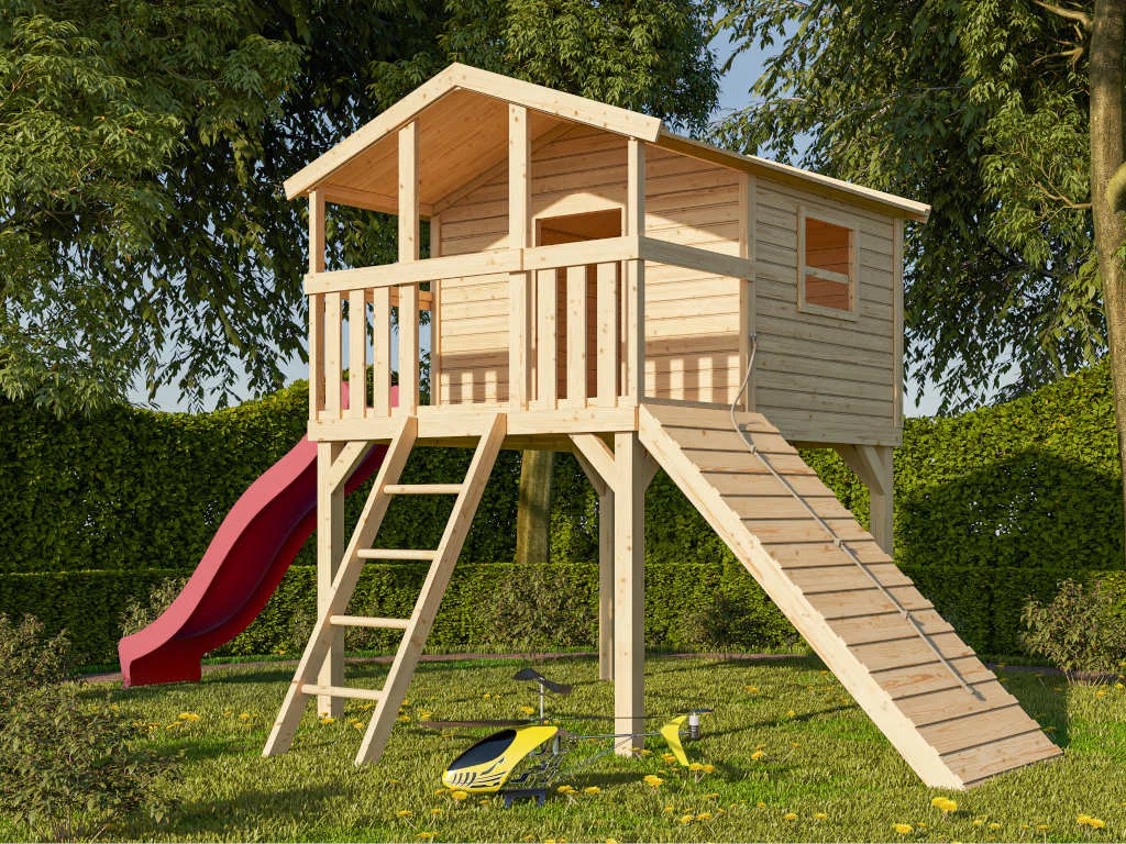 Stelzenhaus Benjamin SET 19 mm naturbelassen inkl. Rutsche rot und mehr