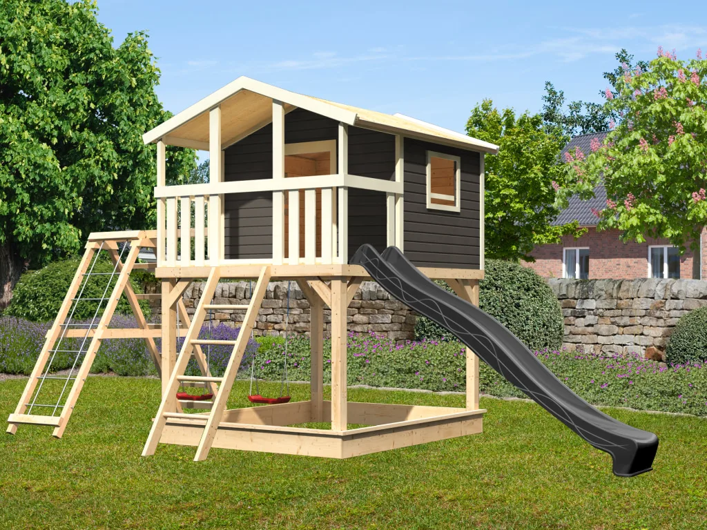 Dieses Spielhaus bietet deinem Kind ein eigenes Reich in erwachsenenfreier Zone. Das Häuschen steht auf Stelzen – um hoch hinauszukommen, ist kindlicher Bewegungseifer gefragt. Stelzenhäuser sind die sichere, stabile Alternative zum Baumhaus und der perfekte Ort für geheime Clubtreffen. Mit einer Grundfläche von 2,95 m² lässt es sich hier wunderbar spielen und toben. Die Wandstärke von 19 mm sorgt für Stabilität. Bitte beachten: Von diesem Spielturm sind verschiedene Ausführungen erhältlich (siehe oberhalb des Warenkorb-Buttons).