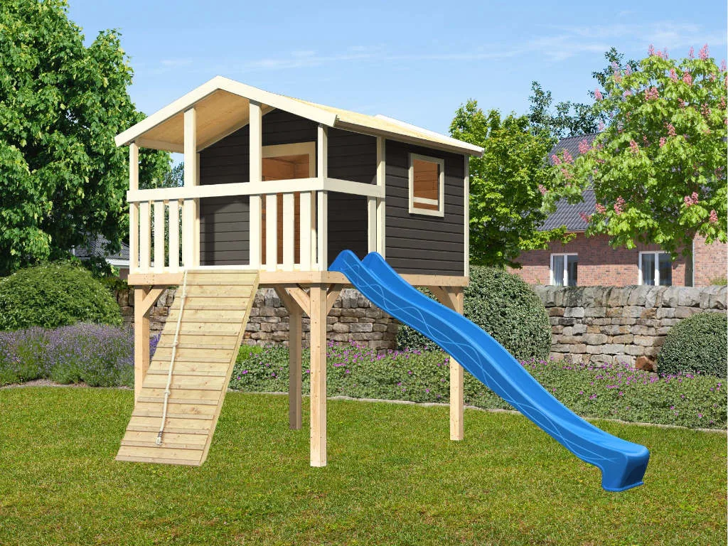 Stelzenhaus Benjamin SET 19 mm terragrau inkl. Rutsche blau und mehr