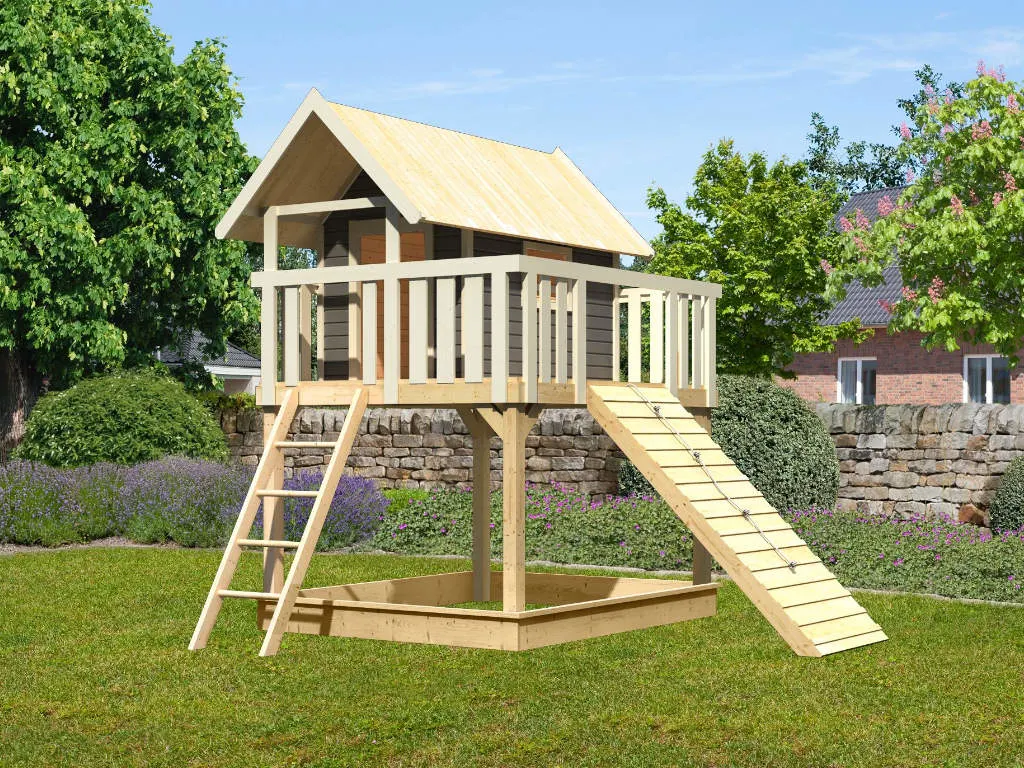 Dieses Spielhaus bietet deinem Kind ein eigenes Reich in erwachsenenfreier Zone. Das Häuschen steht auf Stelzen – um hoch hinauszukommen, ist kindlicher Bewegungseifer gefragt. Stelzenhäuser sind die sichere, stabile Alternative zum Baumhaus und der perfekte Ort für geheime Clubtreffen. Mit einer Grundfläche von 4,81 m² lässt es sich hier wunderbar spielen und toben. Die Wandstärke von 19 mm sorgt für Stabilität.