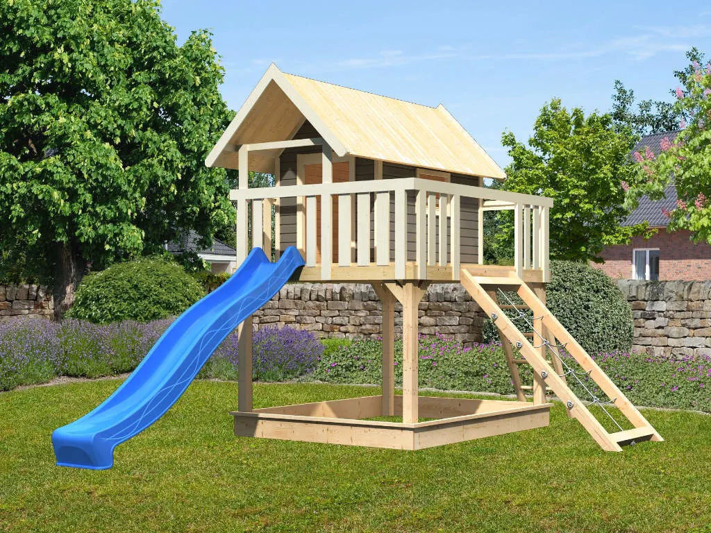 Material: Holz, BxTxH: 198x243x329,5 cm, inkl. Wellenrutsche 3 m blau, Netzrampe