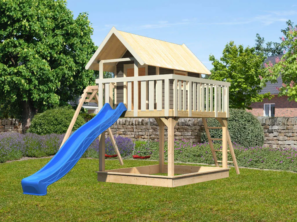 • Stelzenhaus Fidel, inkl. Doppelschaukel, Wellenrutsche, Holzleiter