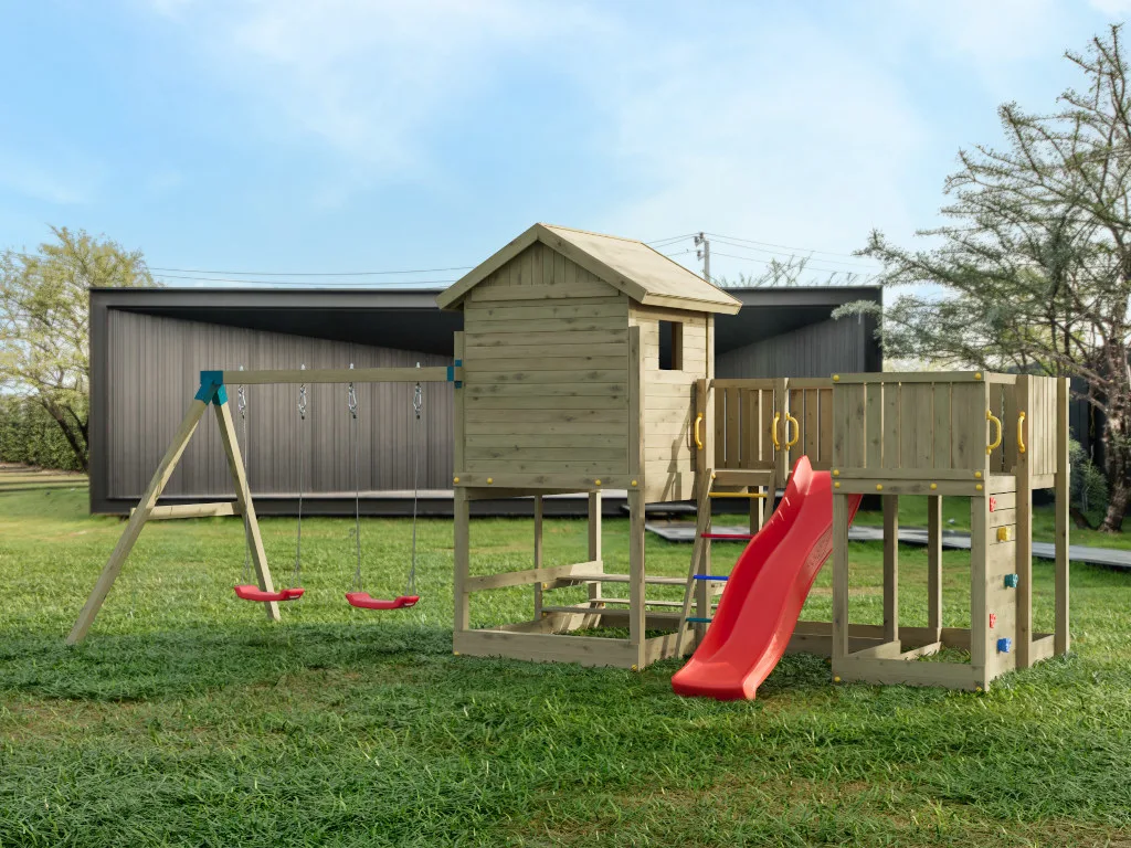 Fungoo ist der Erfinder eines ausgeklügelten Modulsystems für Gartenspielgeräte, das Kinderaugen zum Leuchten bringt. Individuelle Kombinationen aus Spieltürmen und -häusern mit Modulen wie Schaukeln, Rutschen oder Kletterwänden machen den eigenen Garten zum Abenteuerspielplatz. Dabei setzt der Hersteller auf kesseldruckimprägniertes Holz als Träger seiner Geräte. Accessoires wie ein Fernglas oder Lenkrad aus hochwertigem Kunststoff runden das Angebot ideal ab und lassen keine Wünsche mehr offen.