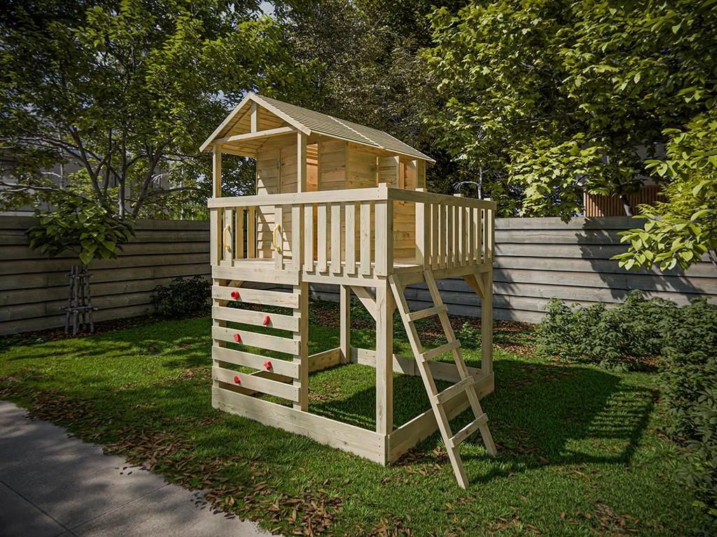 | Lieferumfang | Stelzenhaus Noah, Kletterwand, 5 Klettersteine, Leiter, 2 Haltegriffe, Beschläge, Montageanleitung |