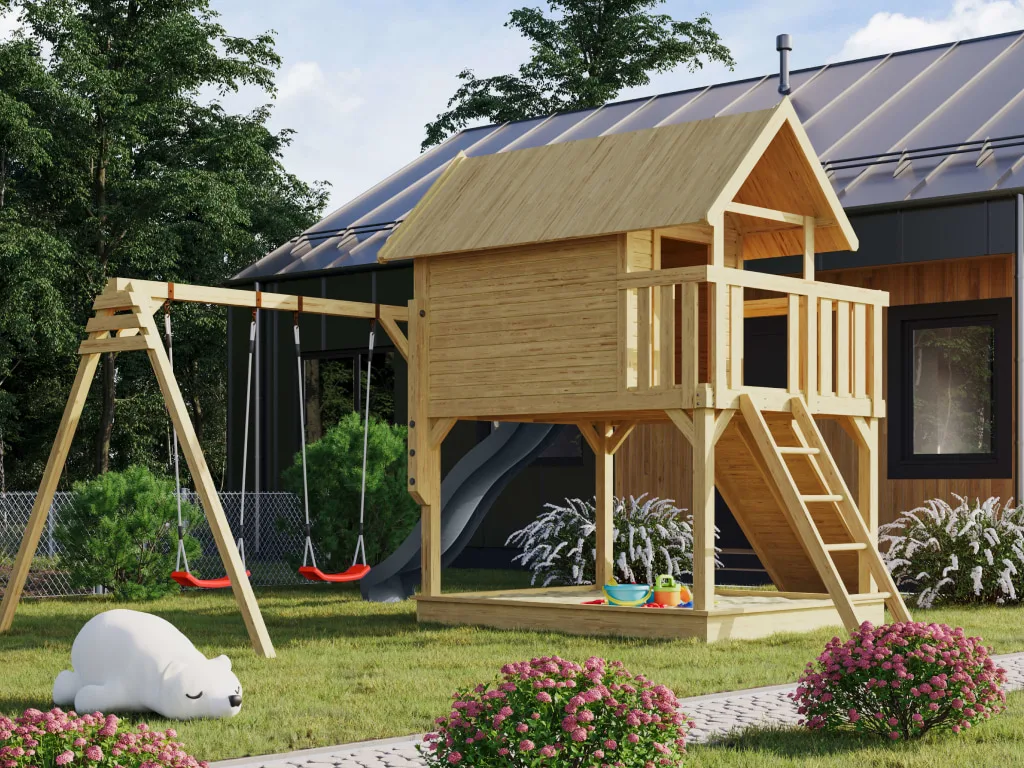 Dieser Spielturm ist aus Holz gefertigt. Der Naturstoff ist das perfekte Material für Kinderspielgeräte – strapazierfähig und beständig. Für die Herstellung wurde erstklassiges Fichtenholz verwendet. Fichte ist besonders langlebig und robust, was für die notwendige Stabilität sorgt. Das Holz ist naturbelassen und unbehandelt, somit frei von chemischer Imprägnierung und absolut unbedenklich. Um die Langlebigkeit und Witterungsbeständigkeit des Holzes zu gewährleisten, empfehlen wir eine Behandlung mit einem Holzschutzmittel wie Lack oder Lasur. Unbehandeltes Holz eignet sich zudem hervorragend für einen farbenfrohen Anstrich.