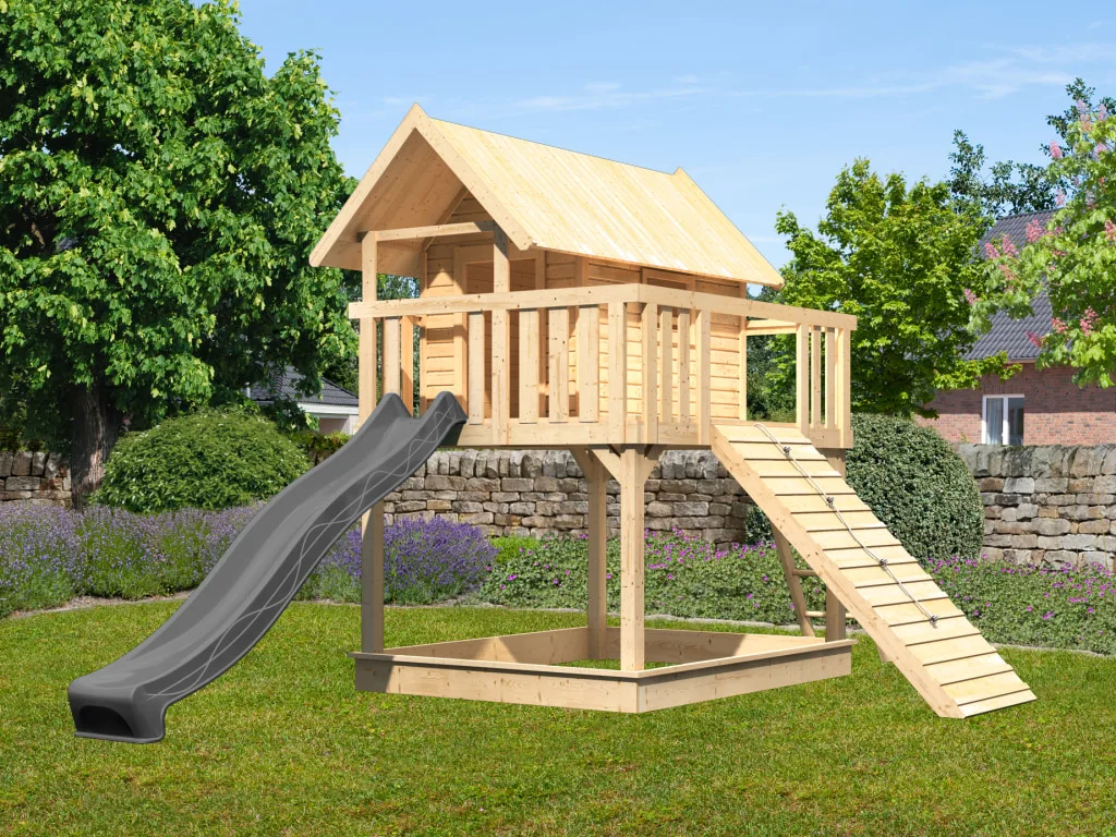 Stelzenhaus SET Fidel naturbelassen inkl. Rutsche anthrazit + Holzrampe