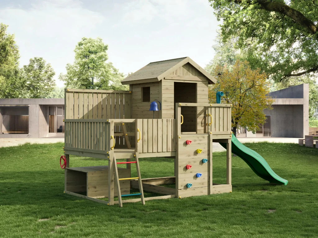 Fungoo ist der Erfinder eines ausgeklügelten Modulsystems für Gartenspielgeräte, das Kinderaugen zum Leuchten bringt. Individuelle Kombinationen aus Spieltürmen und -häusern mit Modulen wie Schaukeln, Rutschen oder Kletterwänden machen den eigenen Garten zum Abenteuerspielplatz. Dabei setzt der Hersteller auf kesseldruckimprägniertes Holz als Träger seiner Geräte. Accessoires wie ein Fernglas oder Lenkrad aus hochwertigem Kunststoff runden das Angebot ideal ab und lassen keine Wünsche mehr offen.