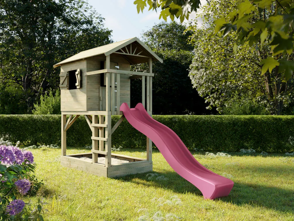 | Lieferumfang | Stelzenhaus Tree Hut, Leiter, Fensterläden, Veranda, Handgriff, Sandkasten, detaillierte Montageanleitung, KBT Rutsche Tsuri 290 cm |