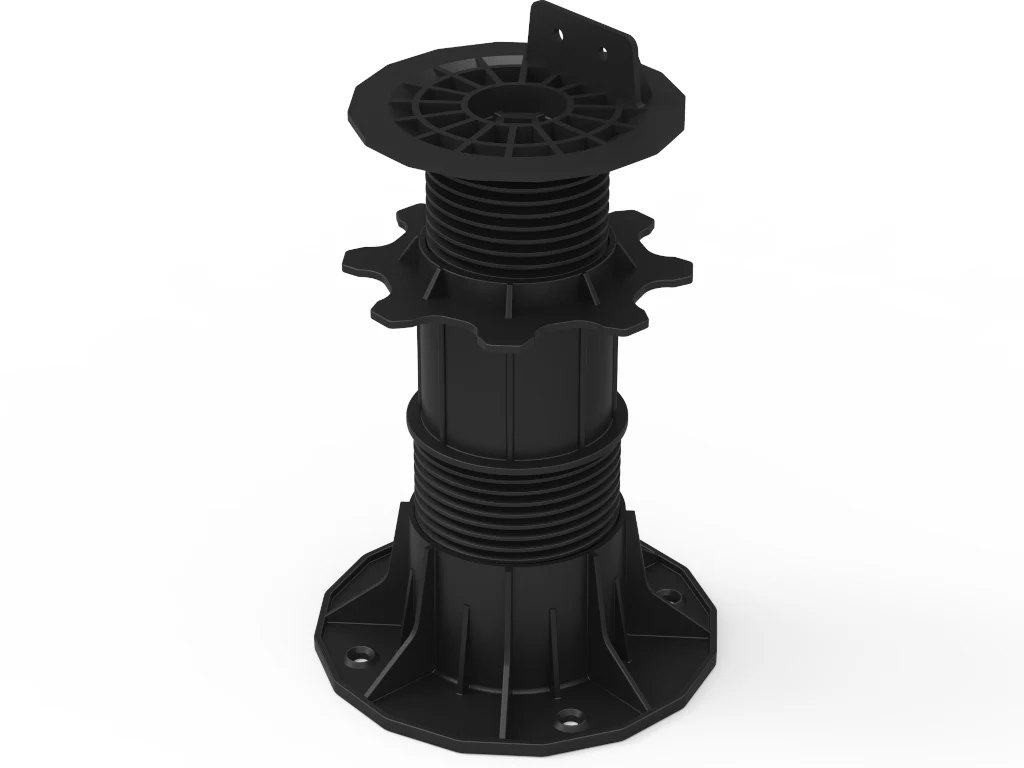 Stellfüße sind beim Bau von WPC- und Holzterrassen essenziell, um Unebenheiten im Boden auszugleichen und die Terrassenstruktur zu stabilisieren. Sie ermöglichen präzise Anpassungen, erhöhen die Sicherheit sowie die Haltbarkeit der Terrasse und verhindern eventuelle Schäden durch ein nicht ebenes Fundament. Stellfüße mit nivellierendem Fuß sind besonders dann sinnvoll, wenn eine Aufstellung auf unebenem Boden gefragt ist. Dadurch, dass sich der Fuß in einem bestimmten Winkel selbst ausrichten kann (0–5 %) werden kleinere Bodenebenheiten automatisch ausgeglichen und für eine sichere Aufstellung gesorgt. Diese Variante lässt sich einfach montieren und ist zudem in einem Bereich von 150–230 mm höhenverstellbar.