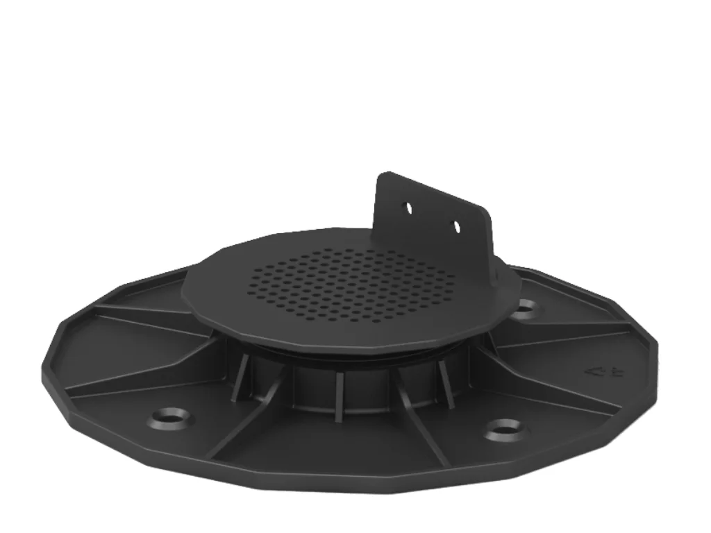 Dieser Kunststoffstellfuß mit einem Verstellbereich von 20–30 mm passt sich präzise den Anforderungen des Geländes sowie des Untergrundes an und lässt sich auch gut bei einer Hanglage oder kleinen Bodenunebenheiten einsetzen. Selbst unter Belastung sind die Träger noch verstellbar. Höchst robust und langlebig hält der Stellfuß Umwelt- und Witterungseinflüssen stand. Die Auflagefläche des abgerundeten Tellerbodens von 20 cm Ø verhindert, dass er in den Untergrund gedrückt wird. Integrierte Stege lassen Wasser abfließen und verhindern Staunässe. Seitliche Lastenverteiler sorgen für eine gleichmäßige Verteilung des Gewichts auf die gesamte Fläche des Standfußes. Pro m² werden ca. 5 Stellfüße benötigt. Einfach, schnell, ohne Vorarbeit und ohne Werkzeug montierbar!