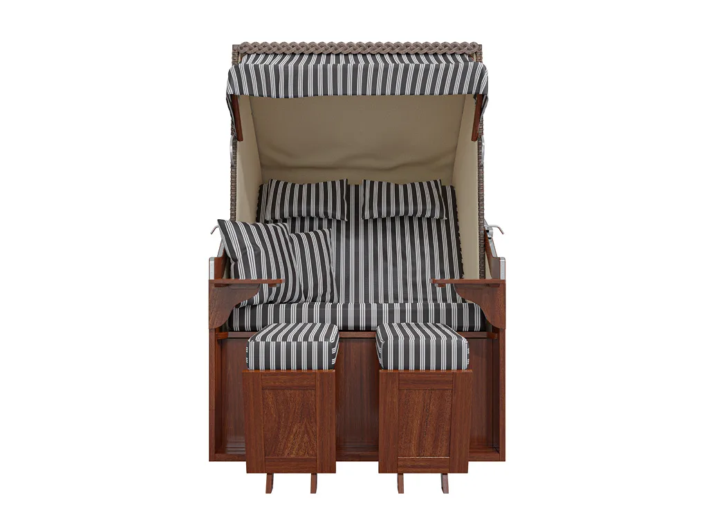 Mache es dir in deinem Strandkorb gemütlich. Die mitgelieferten Sitzpolster, Wurf- und Nackenkissen laden dich zum Kuscheln ein, egal bei welcher Jahreszeit. Die langen und extradicken Fußkissen auf den ausziehbaren Fußstützen sorgen für Extra-Komfort.