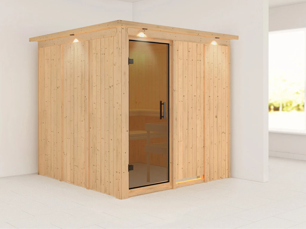 Bitte beachten: Im Lieferumfang dieser Sauna ist KEIN Saunaofen enthalten. Von dieser Sauna sind jedoch Varianten inkl. Saunaofen erhältlich (siehe oberhalb des Warenkorb-Buttons). Zusätzlich findest Du im Onlineshop eine große Auswahl an verschiedenen Öfen.