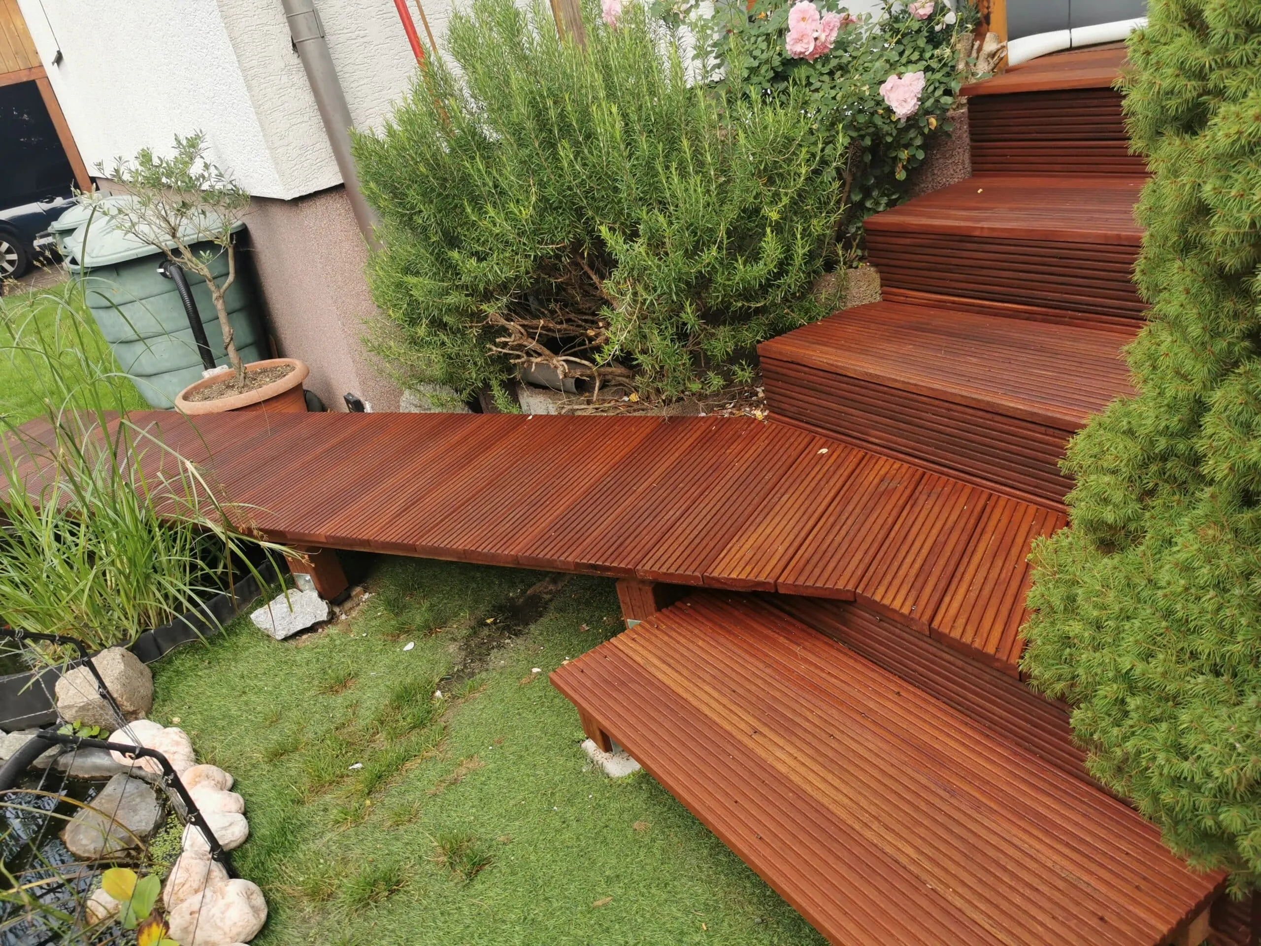 Bitte beachte, dass Farben und Maße unserer Holzterrassendielen produktionsbedingt sowie durch natürliche Materialeigenschaften leicht variieren können. Geringfügige Abweichungen stellen keinen Qualitätsmangel dar.