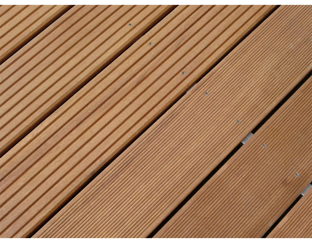 Die fein geriffelte Oberfläche der Terrassendielen ermöglicht ein besonders angenehmes Geherlebnis.