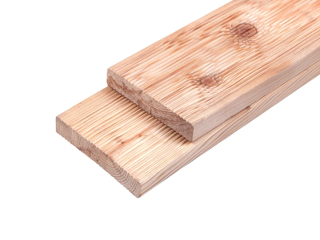 Die Lärche ist eines der härtesten heimischen Nadelhölzer. Mit seinem gelb bis orangebraunen Farbton und der ausgeprägten Maserung gibt das Holz ein lebhaftes Erscheinungsbild ab. Das besonders massive Holz der Lärche ist sehr strapazierfähig und sogar säurefest. Witterungseinflüsse können der gut bis mäßigen Dauerhaftigkeit daher nicht viel anhaben. Die hohe Holzdichte schützt zudem eigenständig vor holzzersetzenden Insekten und Pilzbefall. Aufgrund der hohen Elastizität ist das Holz leicht zu bearbeiten. Für ein sauberes Erscheinungsbild wird das Vorbohren trotzdem empfohlen.