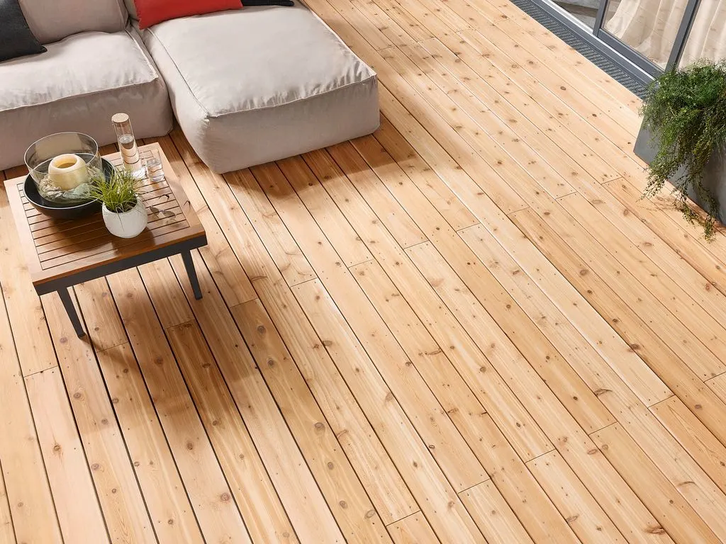 Diese 27 mm starken Terrassendielen werden aus Western Red Cedar hergestellt.