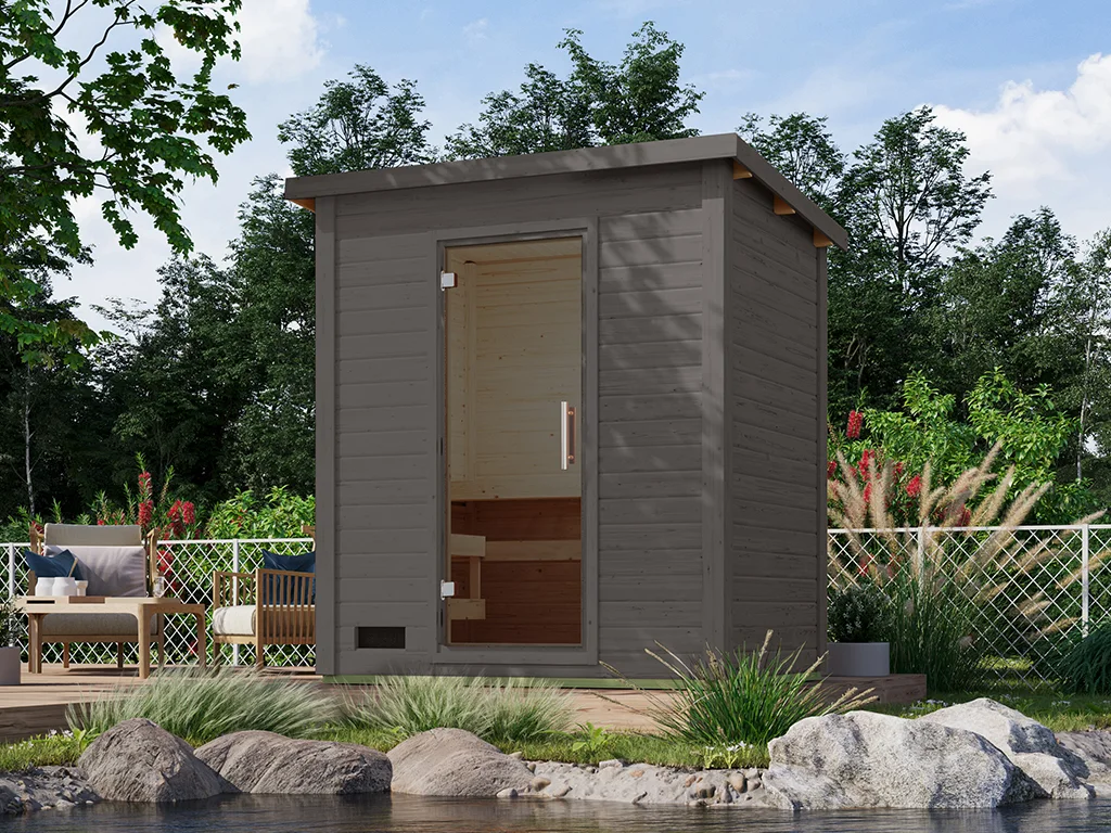 Dieses Saunamodell – eine System- bzw. Elementsauna – zeichnet sich durch seine besondere Sandwich-Bauweise aus, d. h., die Wandelemente bestehen aus einzelnen Schichten. Die bereits vorgefertigten Wandelemente aus Fichte ermöglichen einen schnellen Aufbau innerhalb weniger Stunden. Mit einer Wandstärke von 38 mm sind Systemsaunen optimal isoliert und somit besonders energiesparend. Wegen der sehr gut gedämmten Elemente heizt sich die Systemsauna extra schnell auf.