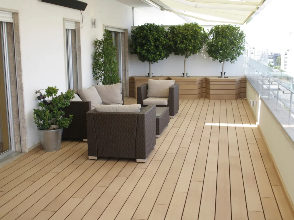 Diese 23 mm starken Terrassendielen werden aus WPC hergestellt. WPC (Wood Plastic Composite) ist eine Verbindung aus ca. 70 % Holz und 30 % Kunststoff mit vielen Vorteilen. Dieser Verbundwerkstoff ist nicht nur leicht zu pflegen und reinigen, sondern auch witterungsbeständig, form- und farbstabil, splitterfrei sowie rutschfest – der ideale Terrassenbelag. Außerdem zeichnet er sich durch die hohe Dichte aus, die ihn gut vor Insektenbefall schützt.