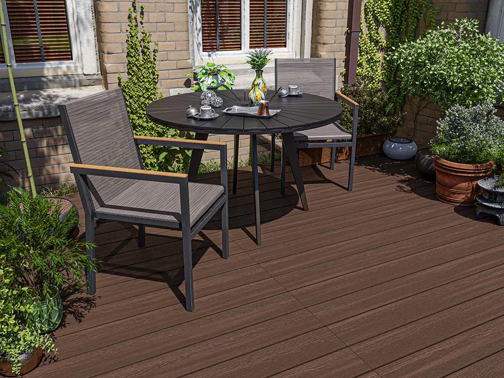 Bei coextrudierten Terrassendielen wird der WPC-Kern komplett mit Kunststoff ummantelt. Dadurch wird die Beständigkeit gegen Feuchtigkeit, Schimmel und Insekten noch erhöht. Gleichzeitig sorgt das Verfahren dafür, dass die äußere Schicht länger schön bleibt.