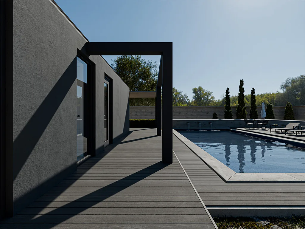 Das Massivprofil macht Terrassendielen wegen ihrer Robustheit und hohen Stabilität zu langjährigen Begleitern. WPC-Terrassendielen mit Massivprofil sind besonders splitter- und reißfest, weshalb sie sich ideal als Poolumrandung eignen und problemlos barfuß begehbar sind. Beim Verlegen von massiven Terrassendielen muss weder zusätzliches Material wie Abschlussleisten gekauft, noch auf dieses geachtet werden.