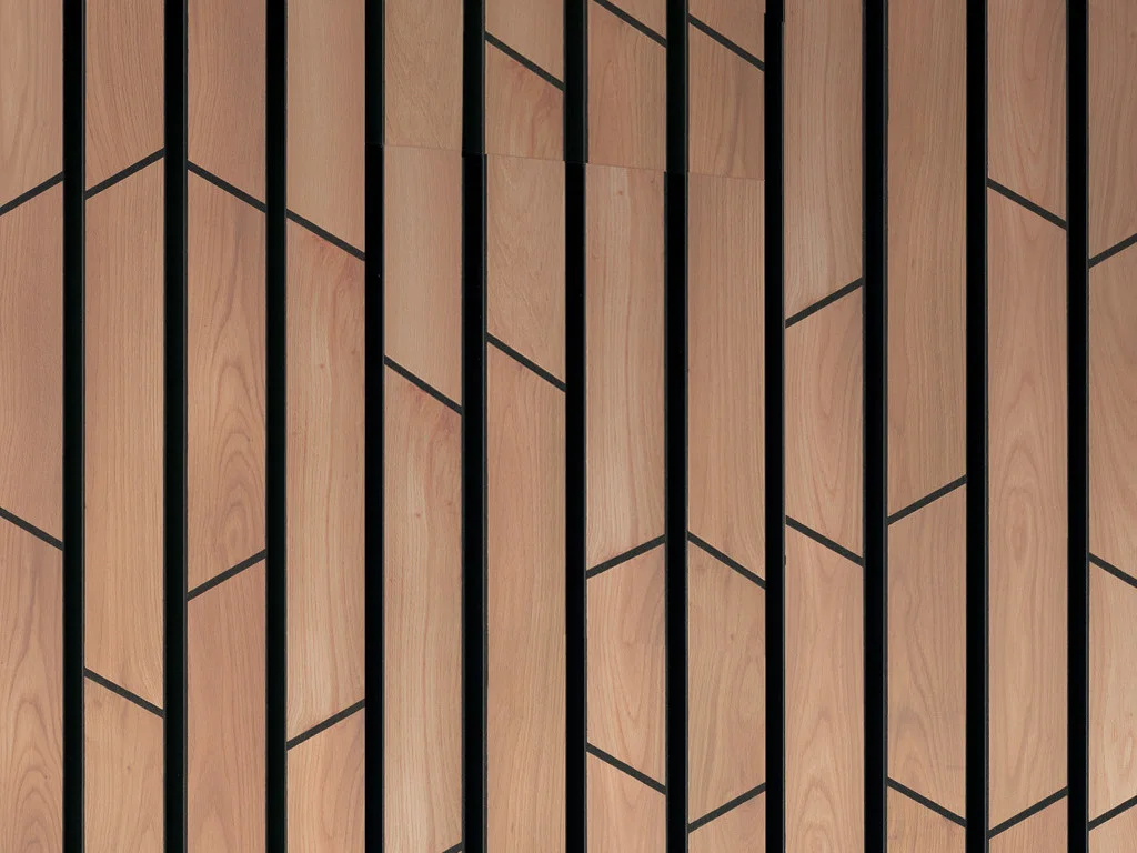 Im Lieferumfang sind zwei Akustikpaneele im Stil Bold Broken Stripes enthalten. Die Besonderheit dieser Akustikpaneele ist das Design aus schief abgeschnittenen Lamellen.