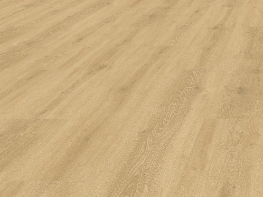 Das Dekor in authentischer Eichenholzoptik vermittelt fühlbare Wärme und Behaglichkeit. Landhausdielen wirken mit ihrer 1-Stab-Optik elegant, rustikal und voller Charakter. Die an vier Seiten umlaufende Fase hebt den Dielencharakter besonders hervor. Dank der strukturierten Oberfläche entsteht optisch und fühlbar der Eindruck eines echten Holzbodens.