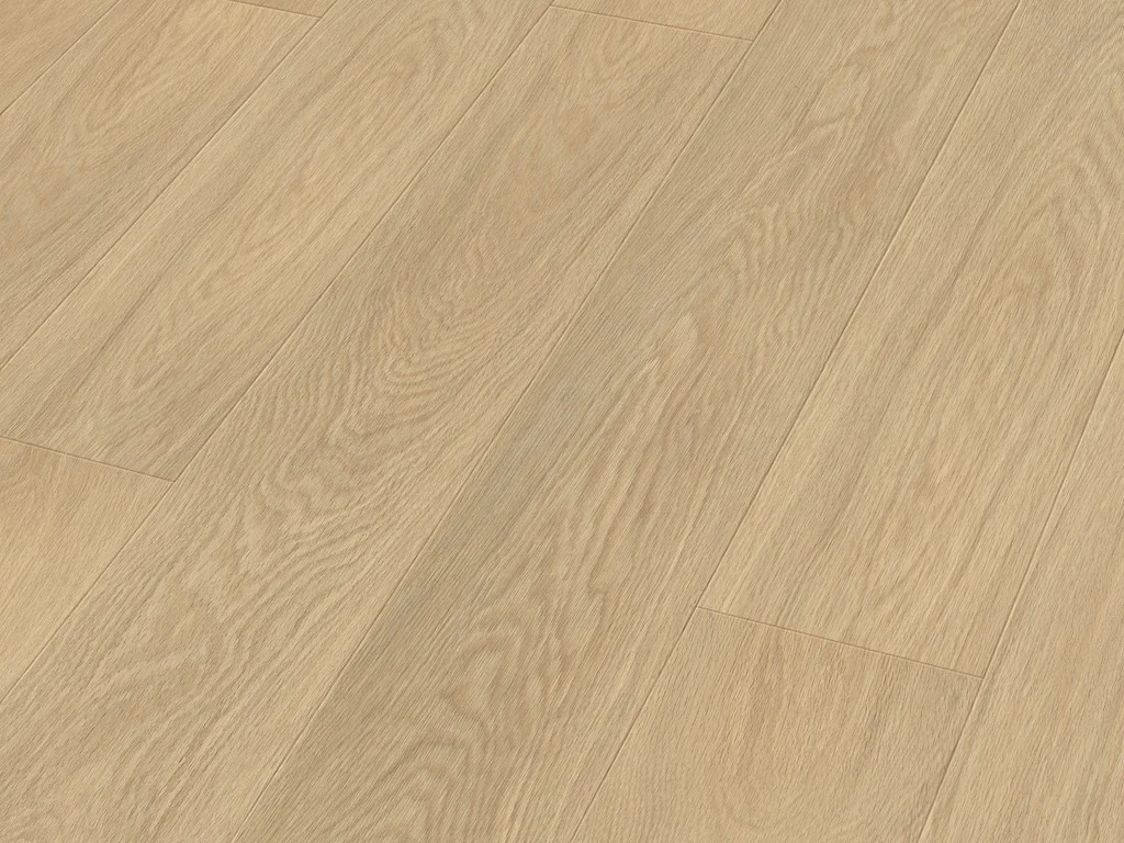 Das Dekor in authentischer Eichenholzoptik vermittelt fühlbare Wärme und Behaglichkeit. Landhausdielen wirken mit ihrer 1-Stab-Optik elegant, rustikal und voller Charakter. Die an vier Seiten umlaufende Fase strukturiert das Verlegebild und verleiht ihm ein gleichmäßiges Muster.