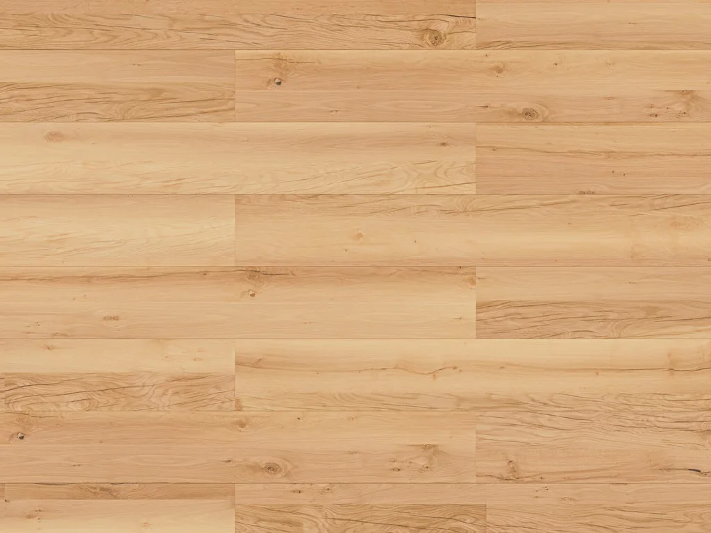 Die markante Eichenholzmaserung des Dekors vermittelt Behaglichkeit und natürliche Lebendigkeit. Landhausdielen besitzen mit ihrer Ein-Stab-Optik einen natürlichen und rustikalen Look, der jeden Raum gemütlich wirken lässt. Die an vier Seiten umlaufende Fase strukturiert das Verlegebild und verleiht ihm ein gleichmäßiges Muster. Dank modernster Herstellungsverfahren werden Musterwiederholungen in der Oberflächenstruktur weitestgehend vermieden, sodass ein natürlich authentischer Holzlook entsteht.
