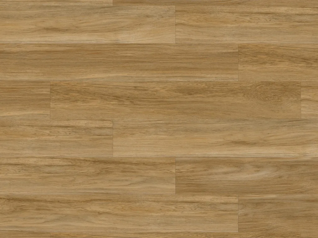 Die Dielen haben eine Breite von 184 mm, eine Länge von 1219 mm und sind 2 mm stark. Durch die 0,3 mm dicke Nutzschicht, die die Oberfläche bedeckt, ist der Bodenbelag besonders langlebig. Außerdem schützt diese Schicht vor Kratzern und Stößen. Dank seiner Resistenz gegen Nässe kann dieser Vinylboden auch in Feuchträumen wie Bad oder Küche verlegt werden. Die Verlegung über einer Warmwasserfußbodenheizung ist kein Problem.
