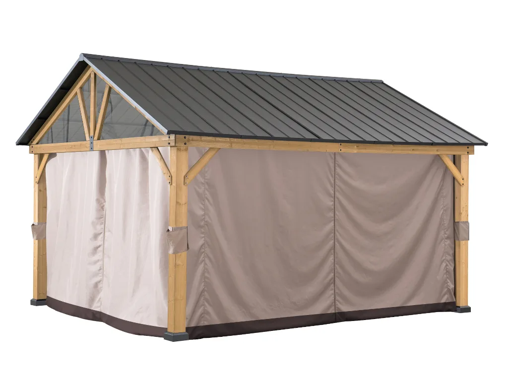 Mit einem wetterbeständigen Vorhang wertest du das Aussehen und die Funktionalität deines Zedernholz-Gazebos (335 x 399 cm) von Sunjoy auf: Er schirmt vor neugierigen Blicken ab und schützt vor zu viel Sonne. Den Vorhang kannst du ganz einfach mit den mitgelieferten Ringbeschlägen an den doppelten Vorhang-/Netzschienen befestigen. Und dank der hochwertigen Reißverschlüsse lässt er sich sicher schließen und fixieren. Wenn du den Vorhang gerade nicht benötigst, sorgen Vorhangbänder dafür, dass alles ordentlich verstaut bleibt.