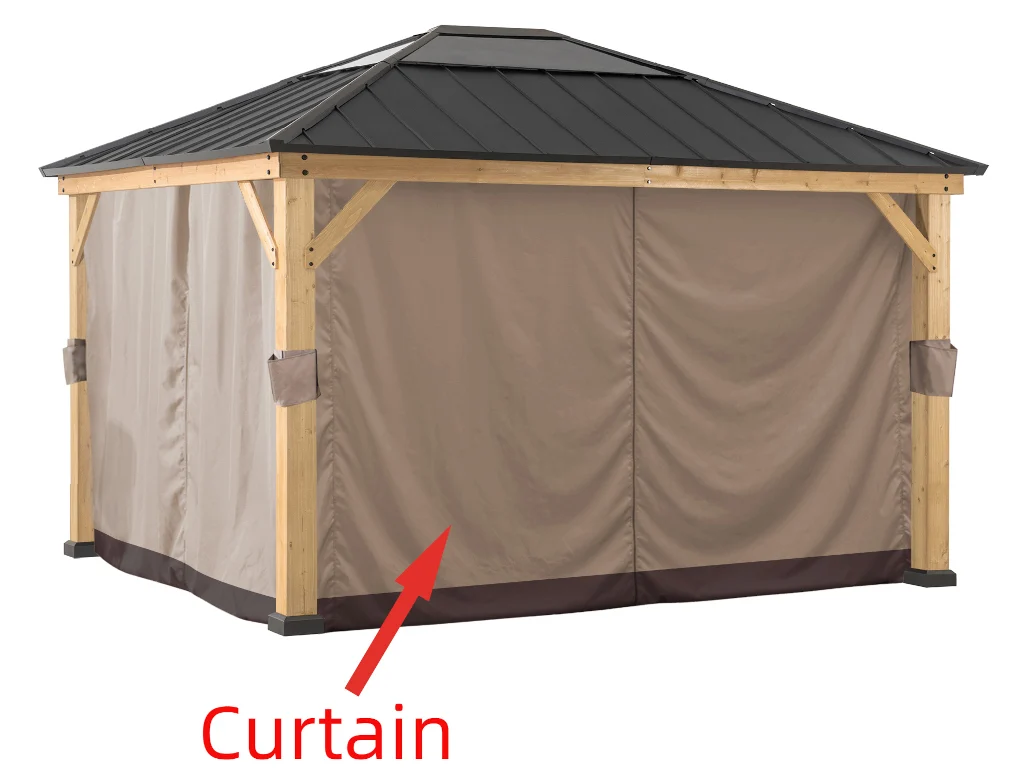 Mit einem wetterbeständigen Vorhang wertest du das Aussehen und die Funktionalität deines Zedernholz-Gazebos (393 x 452 cm) von Sunjoy auf: Er schirmt vor neugierigen Blicken ab und schützt vor zu viel Sonne. Den Vorhang kannst du ganz einfach mit den mitgelieferten Ringbeschlägen an den doppelten Vorhang-/Netzschienen befestigen. Und dank der hochwertigen Reißverschlüsse lässt er sich sicher schließen und fixieren. Wenn du den Vorhang gerade nicht benötigst, sorgen Vorhangbänder dafür, dass alles ordentlich verstaut bleibt.