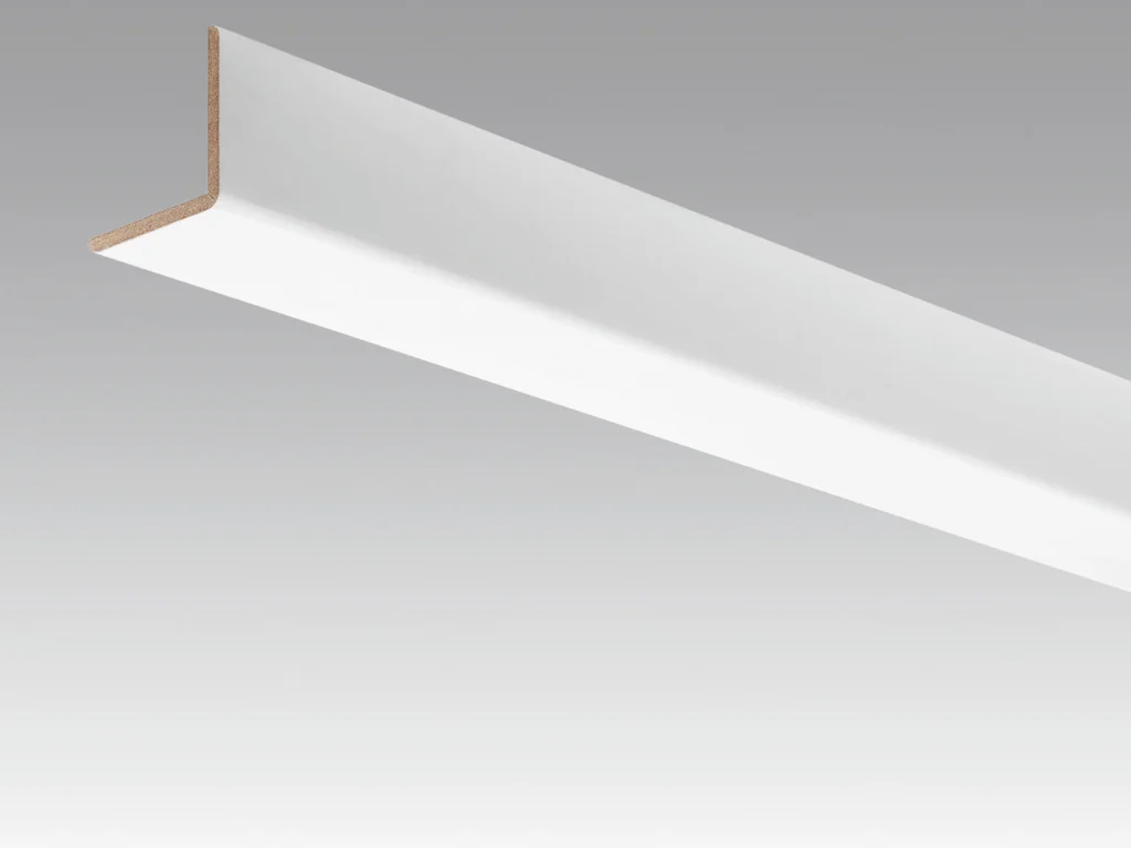 Die glänzende weiße Oberfläche sorgt für einen modernen, sauberen Look und lässt sich vielseitig kombinieren – ideal für gradlinige Raumkonzepte. Gleichzeitig deckt die Leiste zuverlässig Kanten oder Unebenheiten ab und trägt zu einem aufgeräumten Gesamteindruck bei.