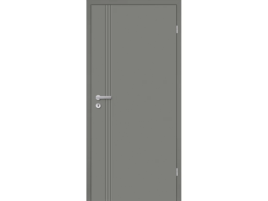Das Türblatt hat eine Designkante. Diese Kantenform zeichnet sich durch eine leicht abgerundete Eckkante aus, die mit eckigen Oberseiten kombiniert ist. Die Rundkante ist jedoch nicht so stark ausgeprägt und hat eine ca. 2 mm kleine Kantenrundung. Durch die leichte Rundung ist die Kante robuster und unempfindlicher gegen Stöße. Das Türblatt ist gefälzt, das heißt, die Türkante in L-Form liegt auf dem Türrahmen/der Zarge auf. Dadurch wird der Spalt zwischen Zarge und Türblatt ideal abgedichtet. Es können weniger Geräusche, Licht und Luft durchdringen.