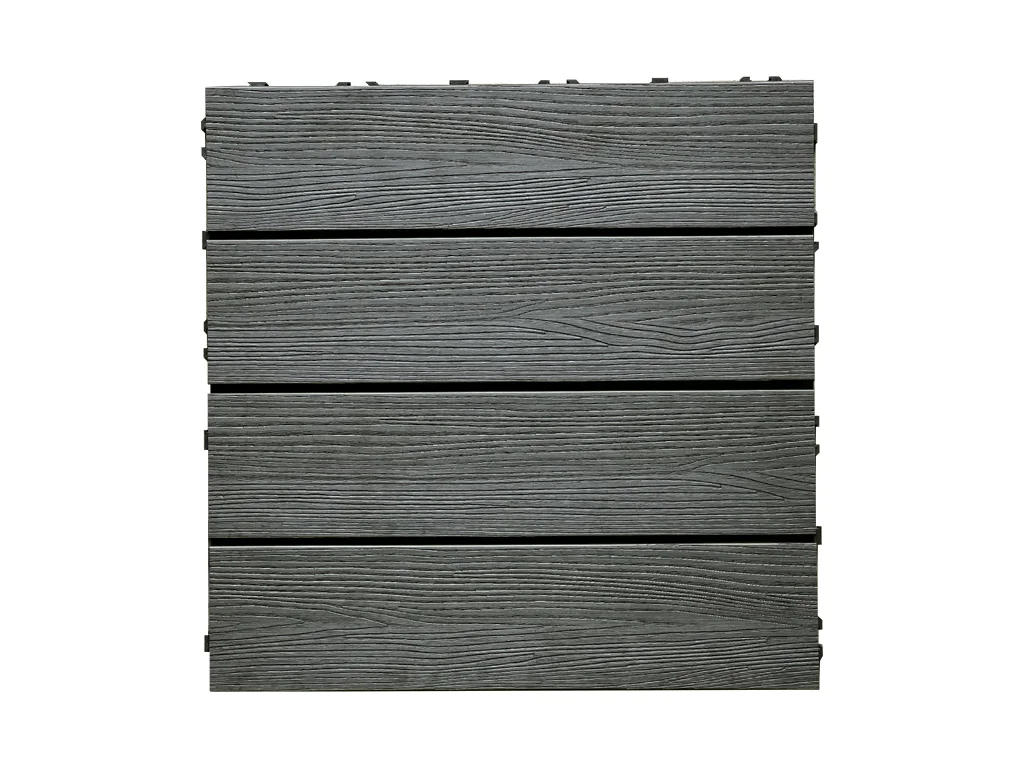 Diese 21 mm starken Terrassenfliesen werden aus WPC hergestellt. WPC (Wood Plastic Composite) ist eine Verbindung aus ca. 70 % Holz und 30 % Kunststoff mit vielen Vorteilen. Dieser Verbundwerkstoff ist nicht nur leicht zu pflegen und reinigen, sondern auch witterungsbeständig, form- und farbstabil, splitterfrei sowie rutschfest – der ideale Terrassenbelag. Außerdem zeichnet er sich durch die hohe Dichte aus, die ihn gut vor Insektenbefall schützt.